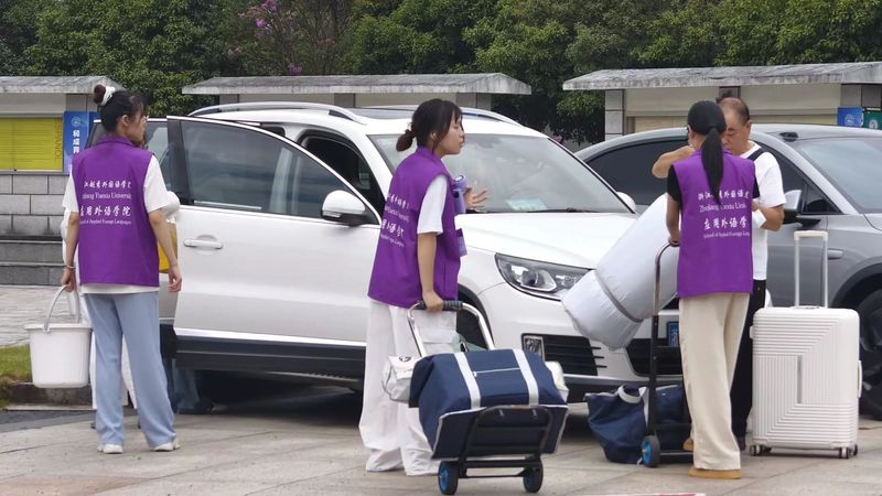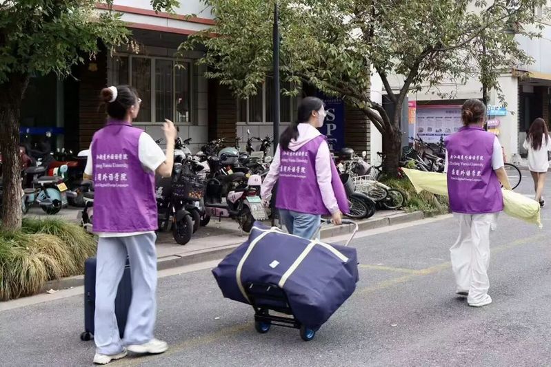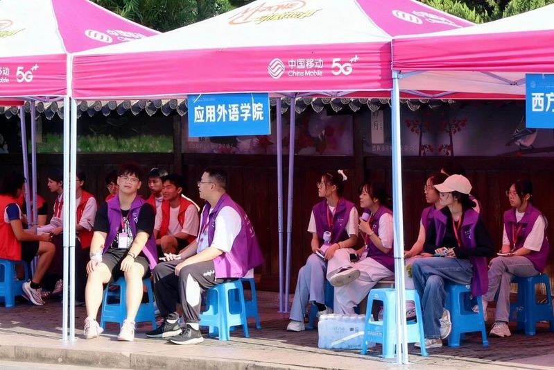 晨光微启,学院的“紫色马甲”们早已就位——迎新志愿者穿梭在校园的每一个路口,工作牌在胸前闪动,微笑始终在线,只为对你说一声:“早安,新同学!”又是一年迎新季,晨风微凉,心意却暖。无论晴雨,不管东西,应外始终等你,在最美的时光里。