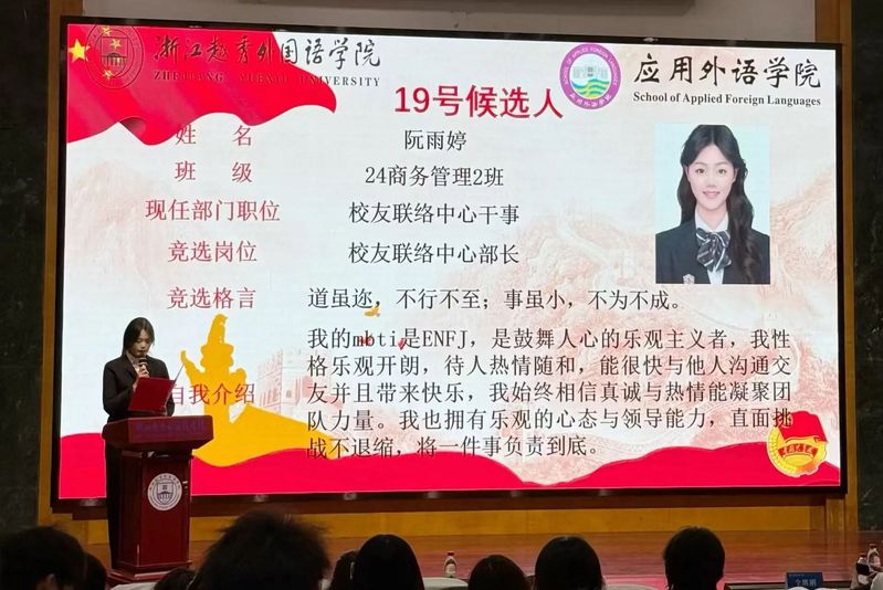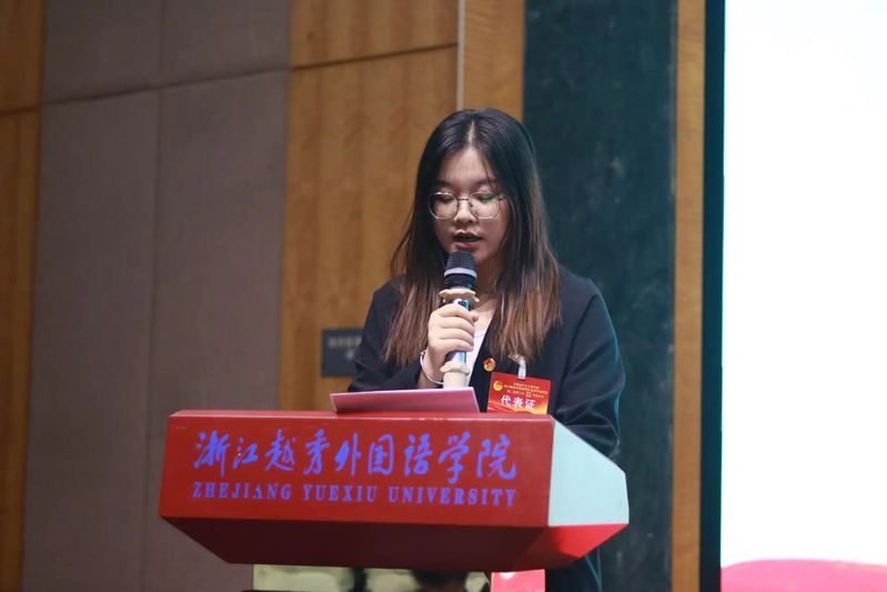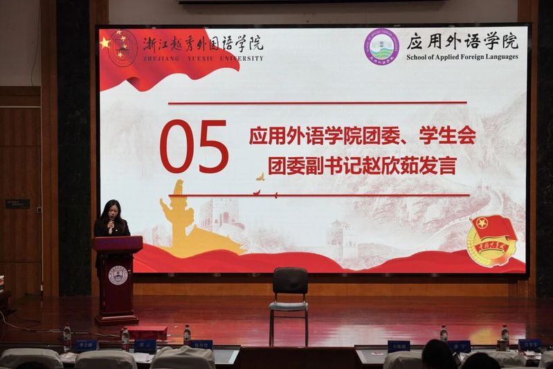 第五项议程:应用外语学院学生团委副书记赵欣茹发言