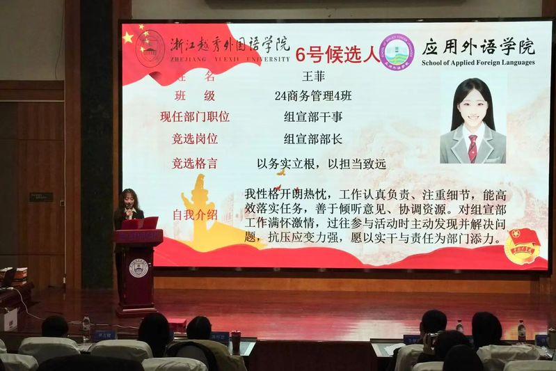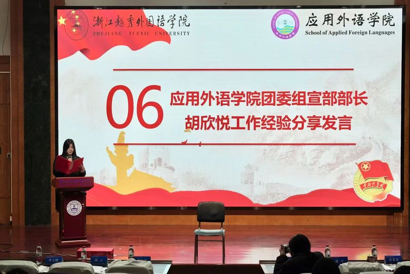 第六项议程:应用外语学院团委组宣部部长胡欣悦工作经验分享