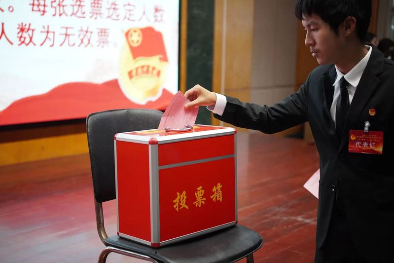 胡云老师代筹备委员会宣读代表产生程序和资格,报告出席本次双代会的团员学生代表资格的有效性。