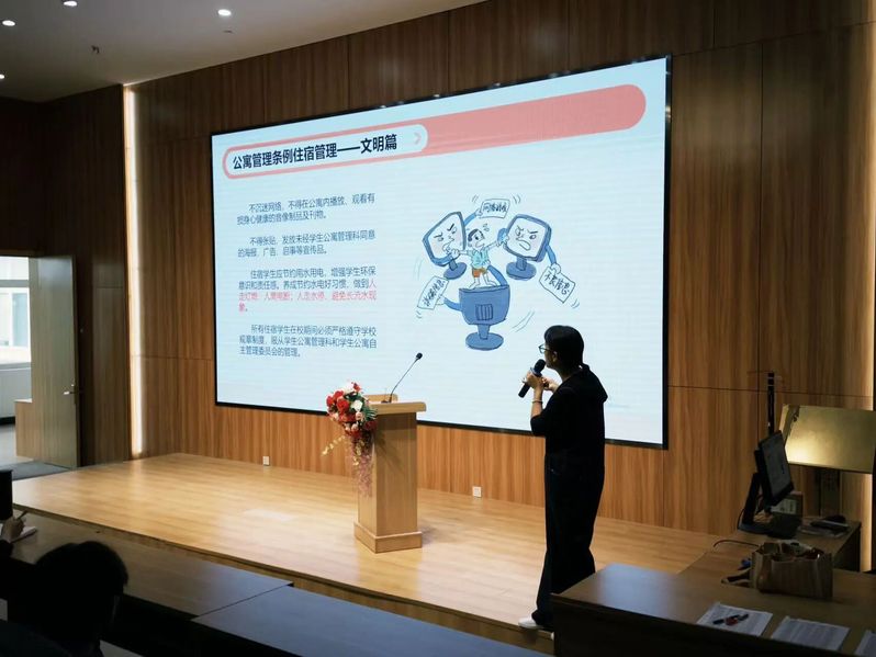 会议伊始,陈老师重点强调了寝室管理的基本规章制度,规范了住宿的行为要求。