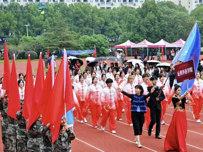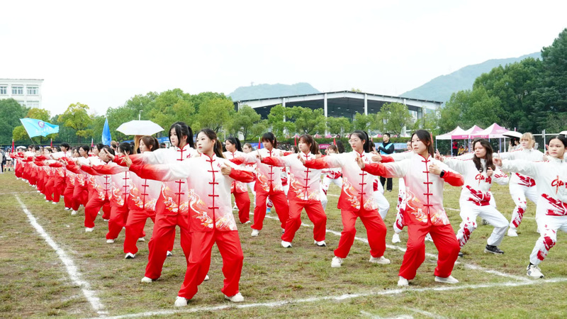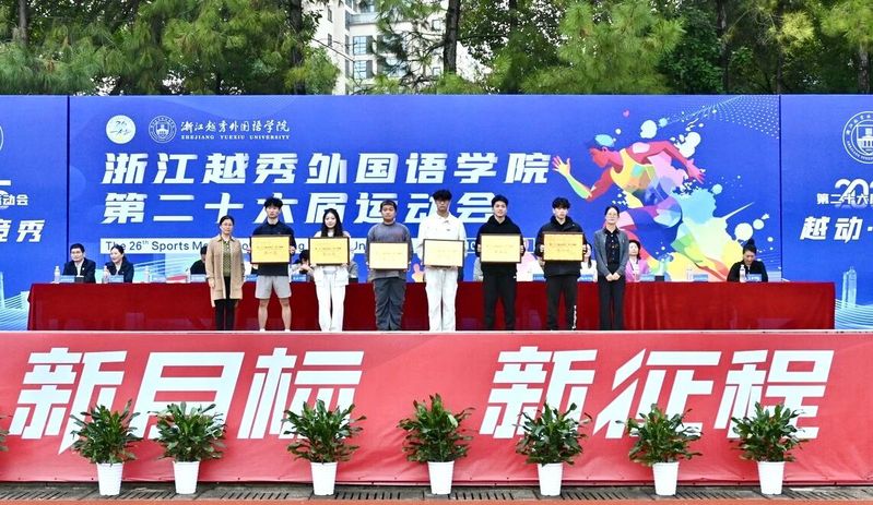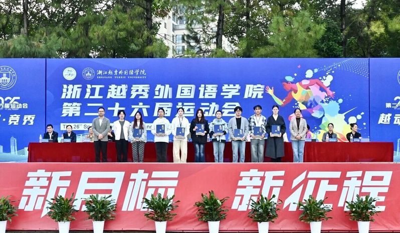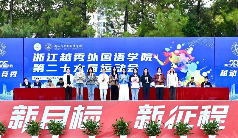 2025年10月30日浙江越秀外国语学院第二十六届校运会在稽山校区田径场举办。校院老师与全体学子齐聚绿茵场,共赴青春盛会。应用外语学院代表队在潘宁副书记带领下入场,队列整齐、斗志昂扬,秋雨未减热忱。在体育艺术表演环节,应用外语学院学子随乐演绎八段锦,招式行云流水、柔中带刚,尽显传统与现代之美,展现出应外学子的沉稳气度与内在力量。
