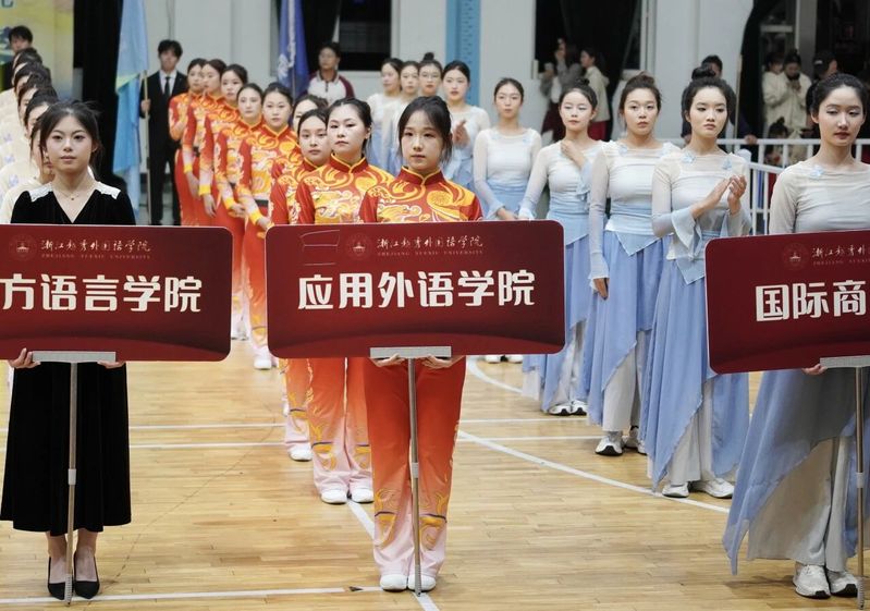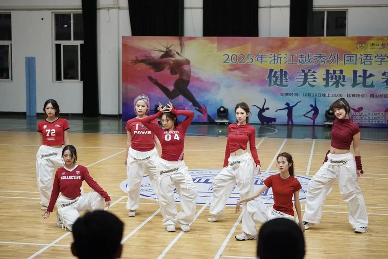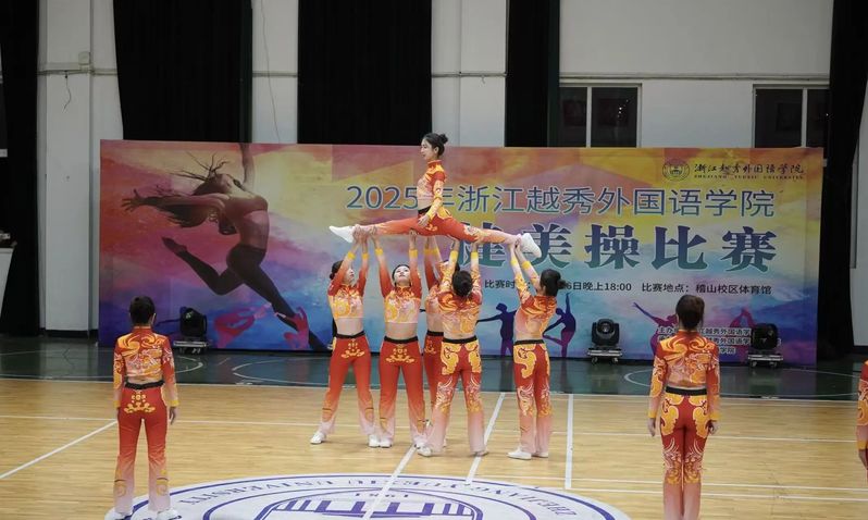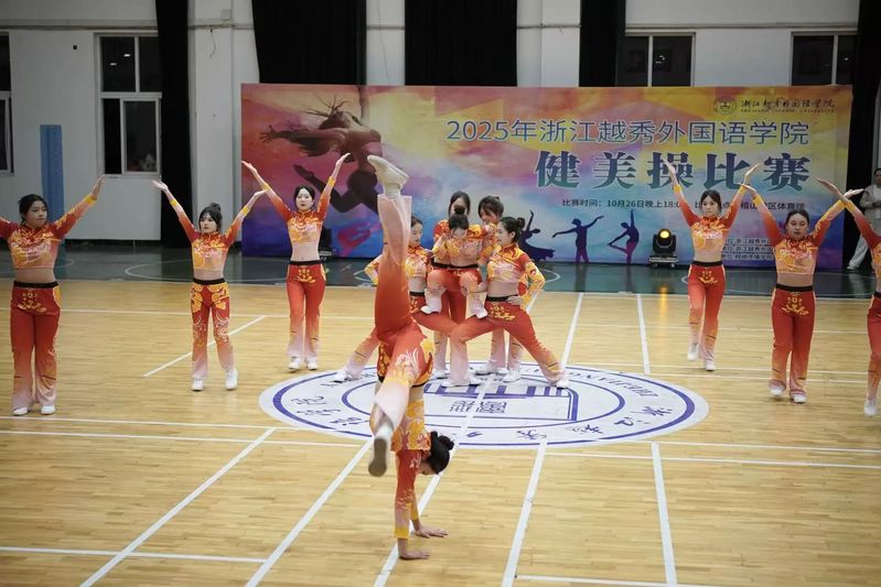 2025年10月26号晚,浙江越秀外国语学院健美操比赛在稽山校区体育馆拉开帷幕。本次比赛共设置了自由舞蹈、民族健身操和校园健身操三个项目。我院学子积极参赛,用汗水舞出了应外学子的青春风采。