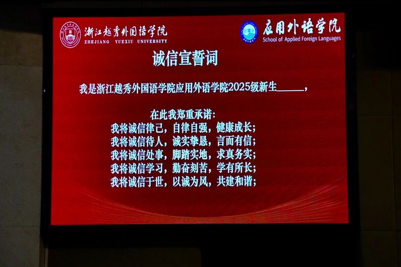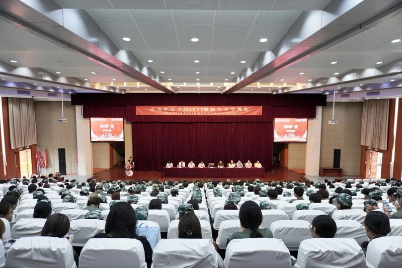 9月22日中午,我院2025级新生开学典礼在稽山校区综合楼报告厅举行。院长曹宇晖、副院长蒋惠玲、教学督导、两办主任、各系负责人出席典礼。2025级新生辅导员、班主任莅临现场观看,典礼由应用外语学院党委副书记潘宁老师主持。
