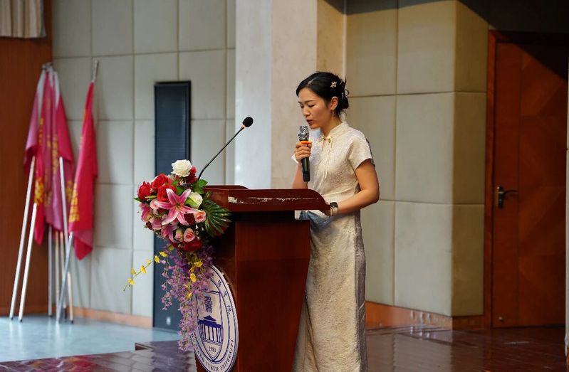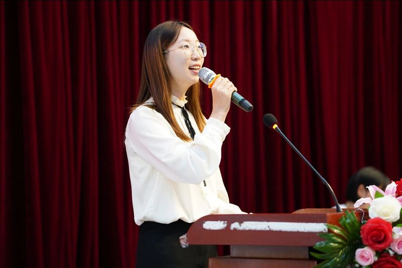 应用日语系王婷老师作为教师代表发言。引用日语名言鼓励同学们相信自己的潜力,持续提升外语核心素养与应用能力,以奋发的姿态投身专业学习,保持积极进取的状态,不断突破自我,拓展国际视野,最终成为卓越的外语人才。